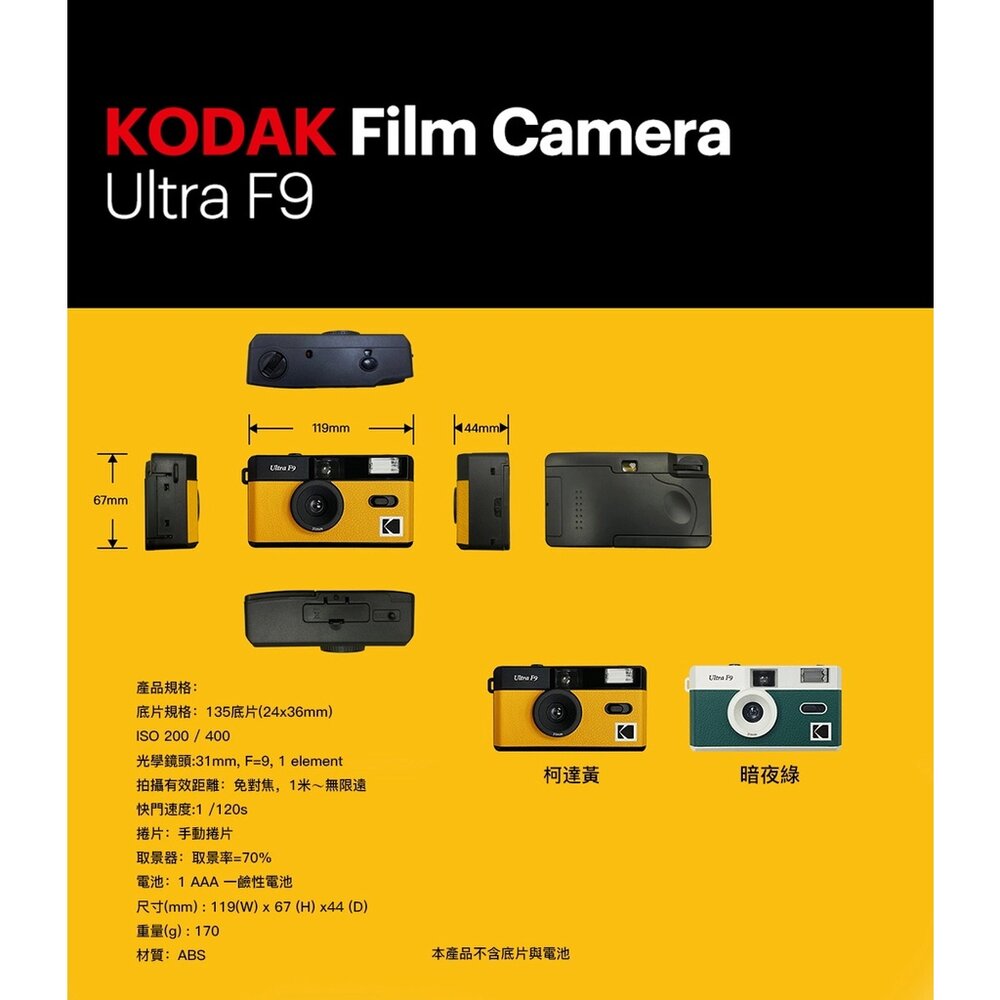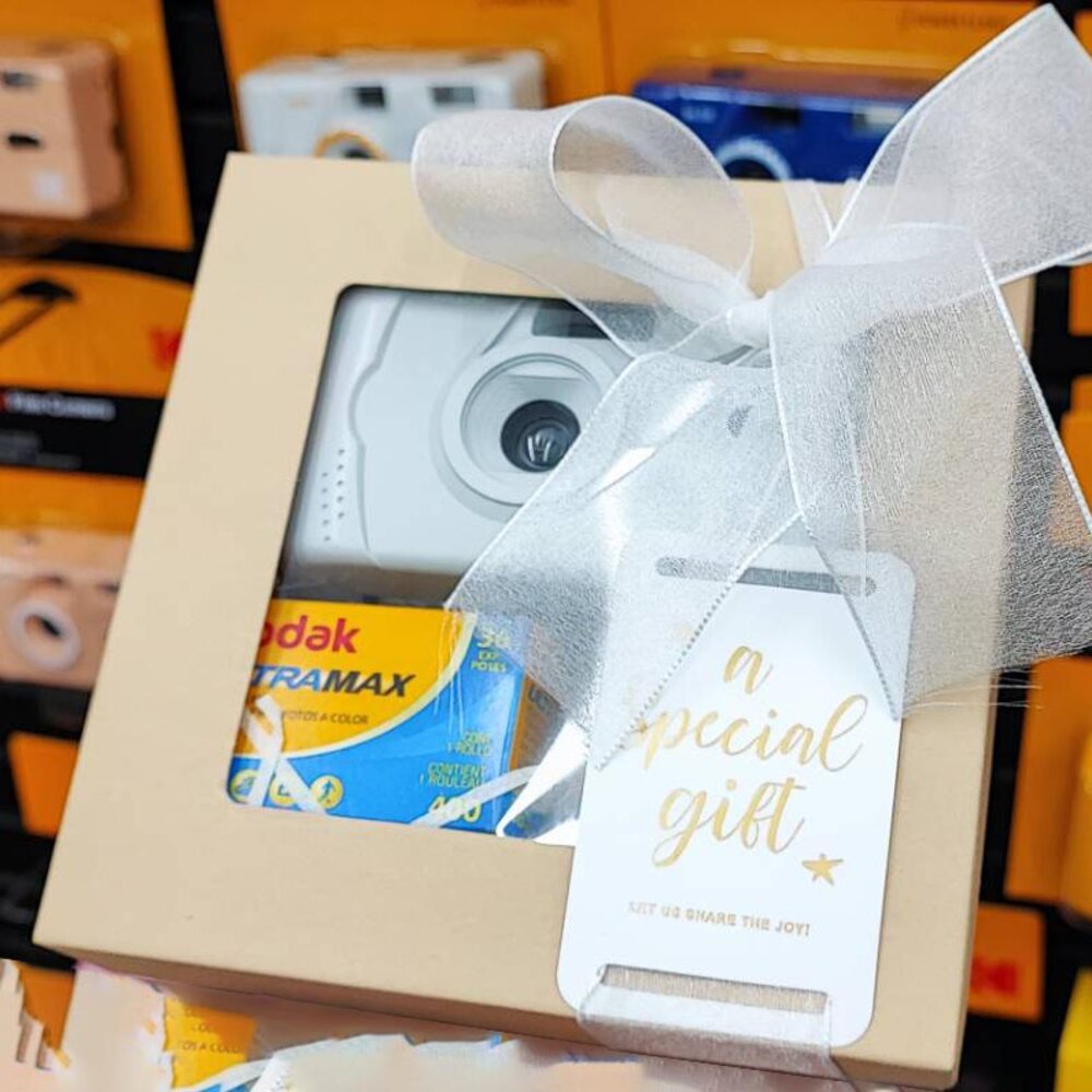 簡約禮盒組內含 相機+底片+兩顆KODAK原廠4號鹼性電池 (📣 因為禮盒尺寸限制 需要拆開相機原包裝)