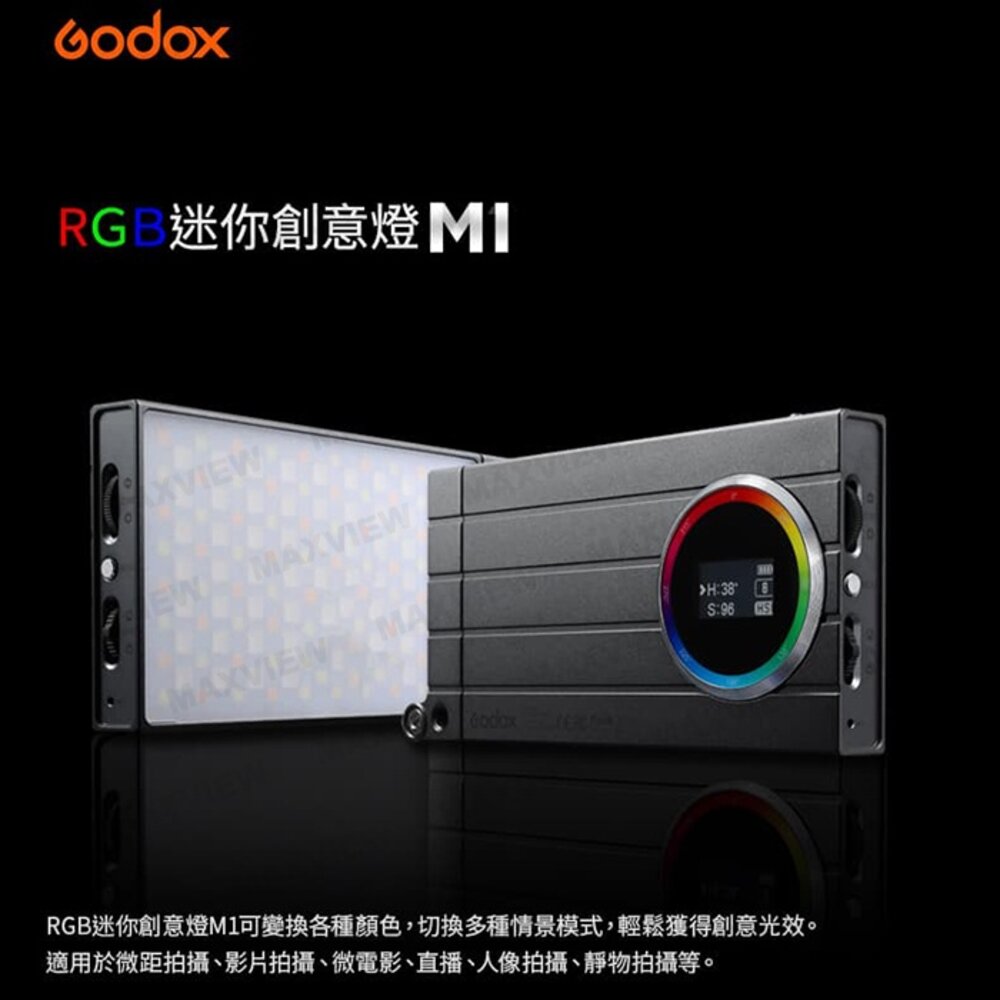 除新品不良可協助檢測換新,一經拆封恕無法接受退換貨 Godox M1 RGB 高亮度迷你創意全彩LED攝影特效補光燈 開年公司貨一年保固 超取免