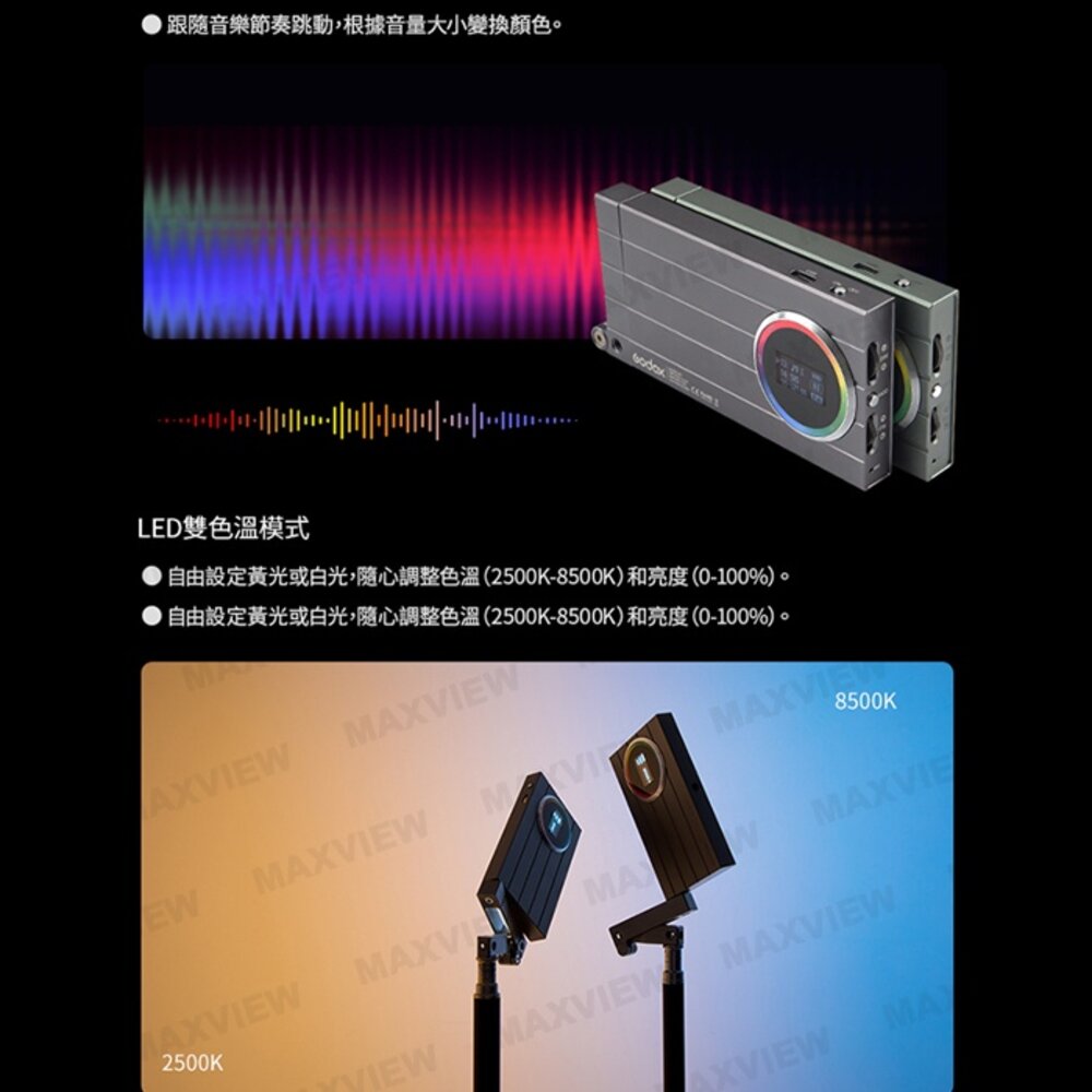 RGB全色,色溫2500~8500K