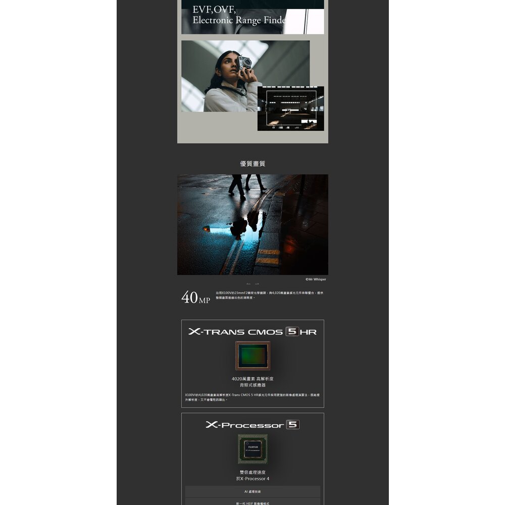 高解析度: 搭載旗艦級 4020 萬畫素 X-Trans CMOS 5 HR 感光元件,提供驚人的細節捕捉能力,超越前代 X100V 的 2610 萬畫素。