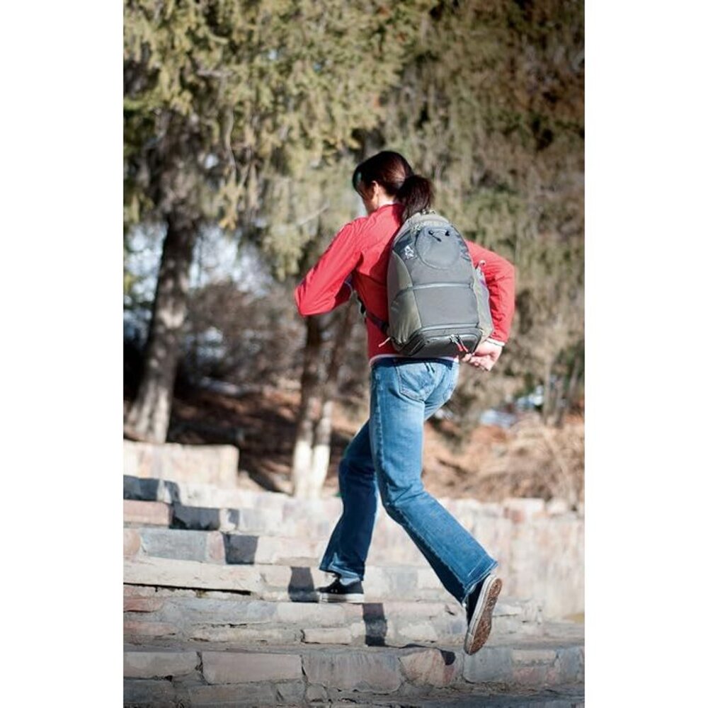 該包有一個帶拉鍊的媒體收納盒,可保護記憶卡、數據線和電池,一個網狀側袋可方便放置水瓶或其他物品,還有一個帶壓縮繩的儲物袋。有一個可折疊的三腳架附件,可以固定一個小三腳架。該包由附帶的肩帶攜帶,肩帶帶有墊子和快速釋放的胸骨連接點,可實現 3 點穩定性。