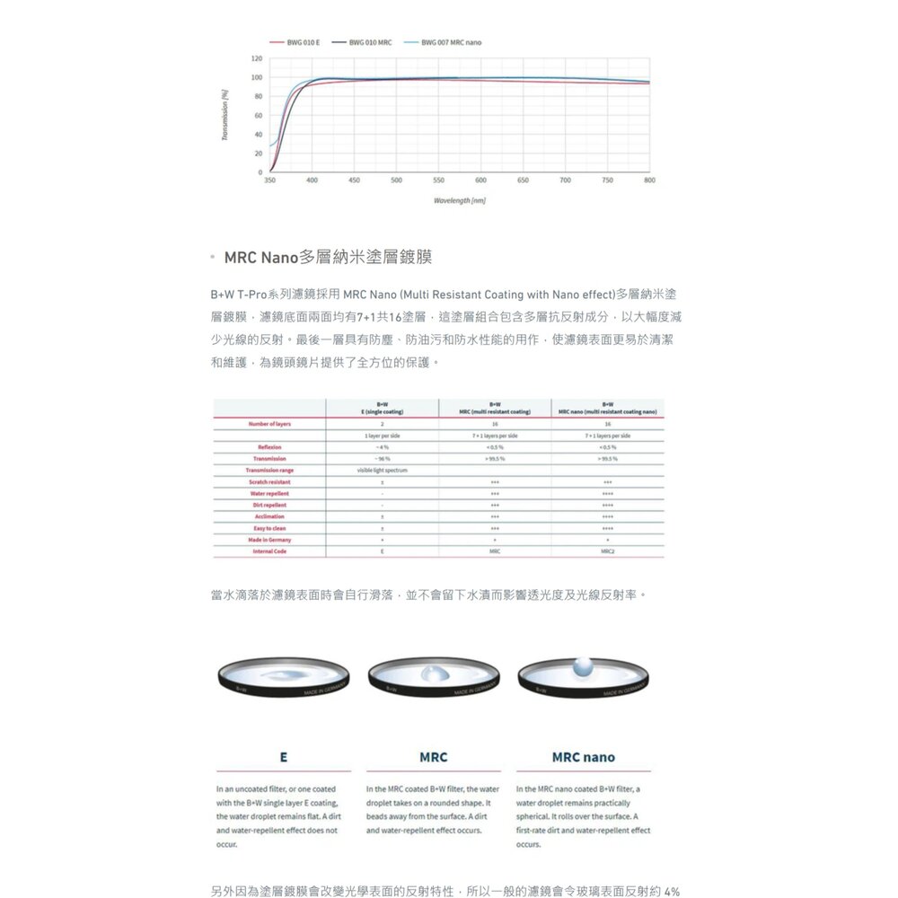 鍍膜: MRC nano (多層奈米防水防污鍍膜)