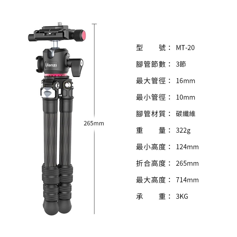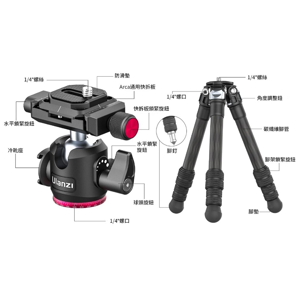 Ulanzi MT-20 Arca通用雲台碳纖維三腳架
