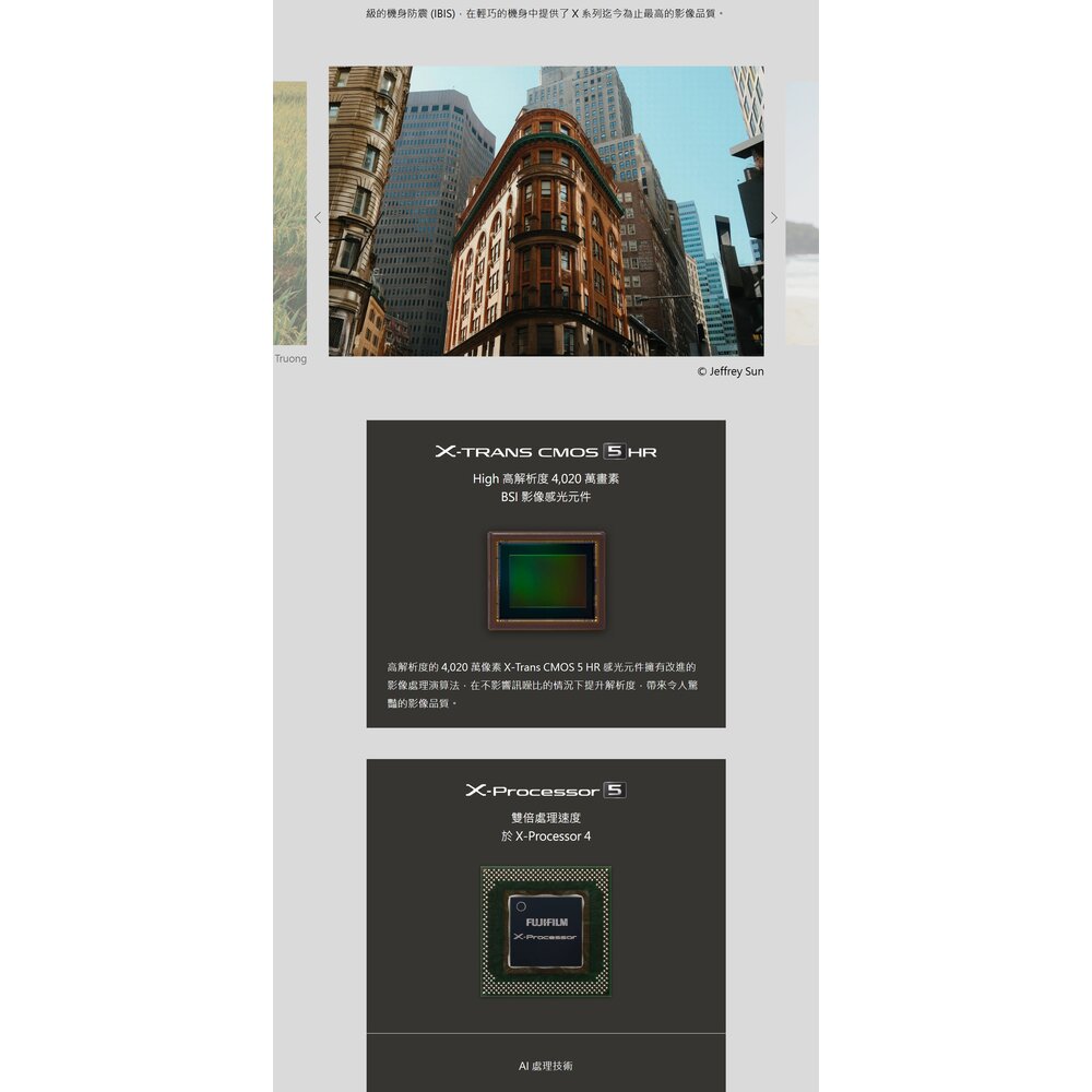 高解析度的 4,020 萬像素 X-Trans CMOS 5 HR 感光元件具備改進的影像處理演算法,在不影響訊噪比的情況下提升解析度。令人驚豔的影像品質盡在掌握。