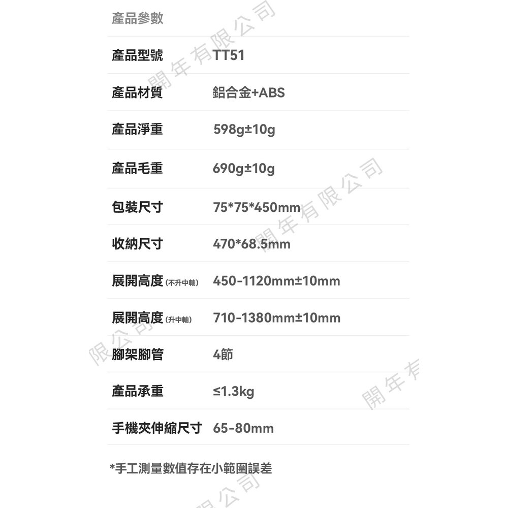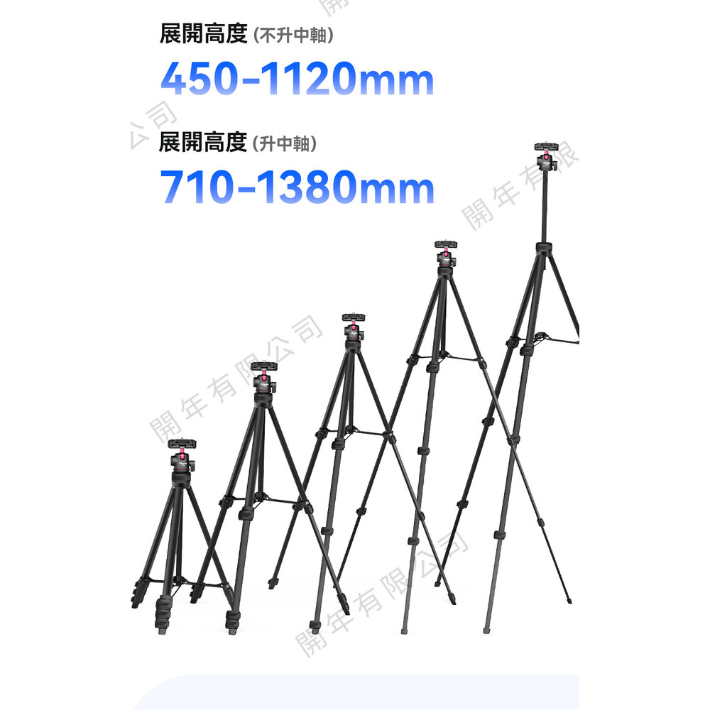 展開高度: 450-1120mm(不升中軸); 710-1380mm(升中軸)