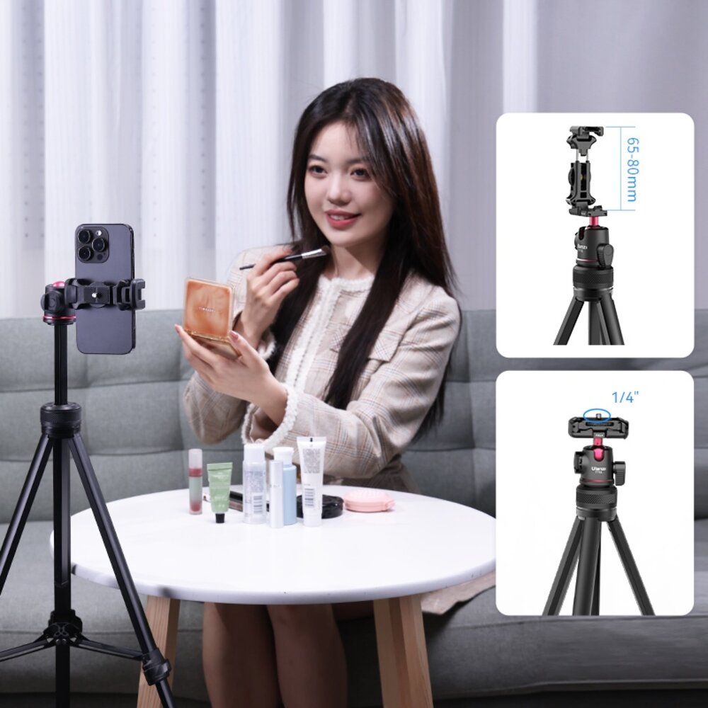 Ulanzi TT51 鋁合金手機兩用四節攝影三腳架 / 扳扣式 / 隱藏式手機夾雲台 / 適合手機、微單等 / 收納長度47cm / 僅重598g / 最大高度1380mm