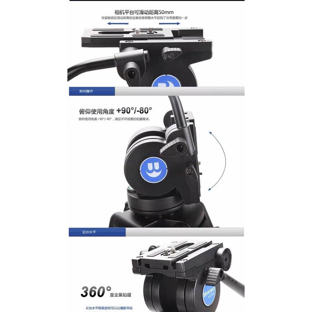🚀 專業液壓雲台: 內建阻尼系統,支援平滑的 360 度水平轉動與俯仰控制,確保畫面過場流暢。