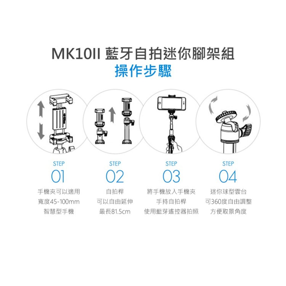除新品不良可協助檢測換新,一經拆封恕無法接受退換貨 美孚】藍牙自拍迷你腳架組 MK10II (附遙控器) 桌上型 遙控拍攝 二代