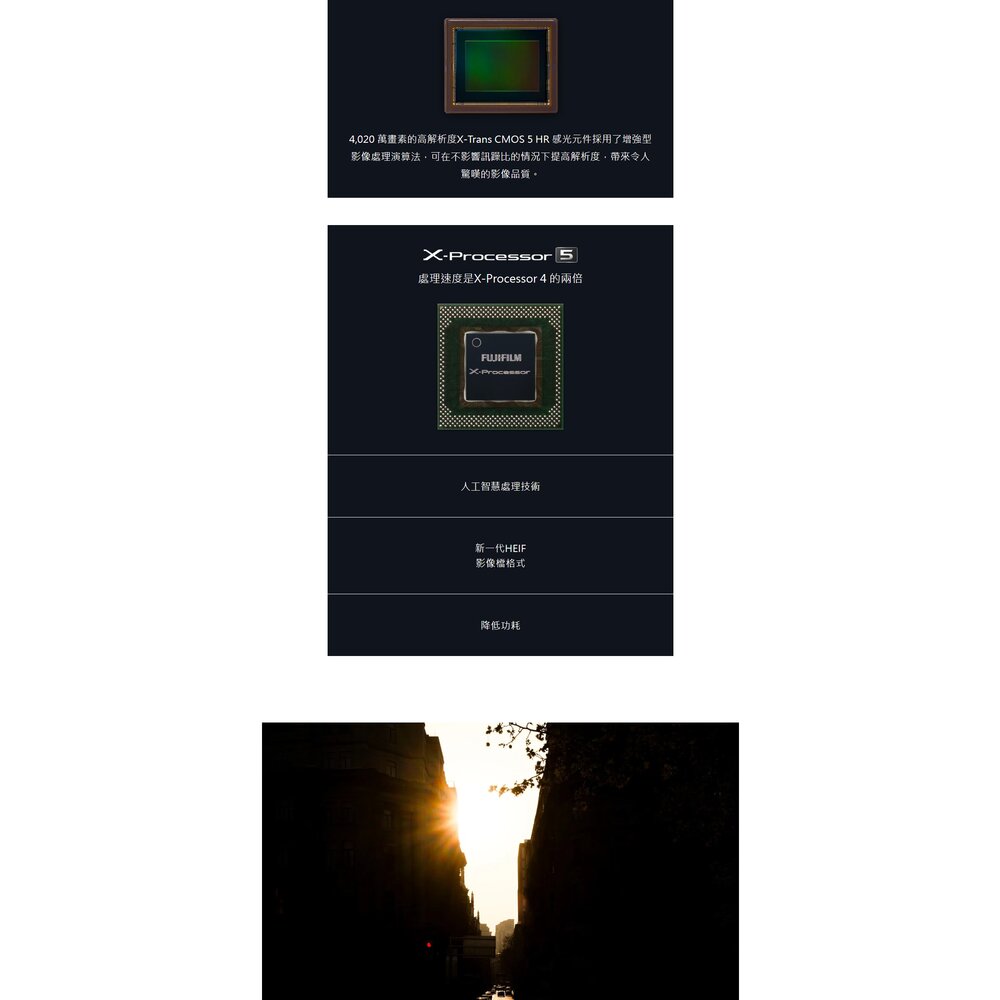 📸 旗艦級畫質: 內建與 X-T5, X-H2 同級的高畫素感光元件,提供優異的影像細節和富士經典的底片模擬色彩。