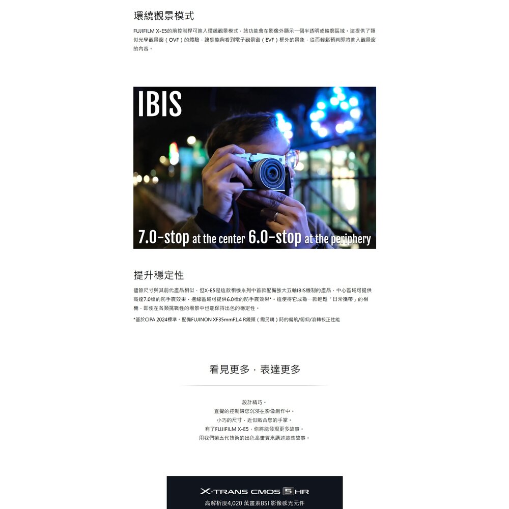 FUJIFILM 富士 X-E5 XE5 XT5 旁軸 復古 經典 輕巧 單機身 XF卡口 VLOG 街拍 台灣公司貨 銀色 黑色 兩年保固