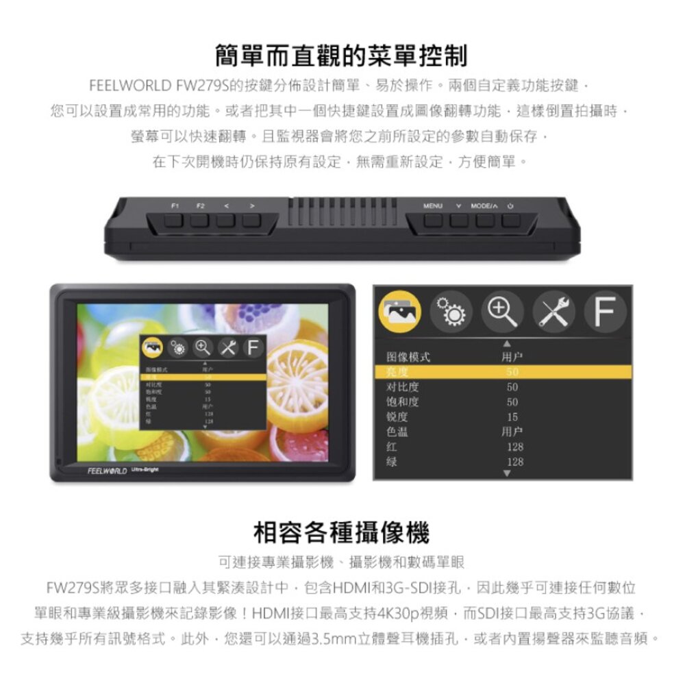 💯總代理公司貨【FEELWORLD 富威德】FW279S 4K專業攝影監視螢幕(7吋)