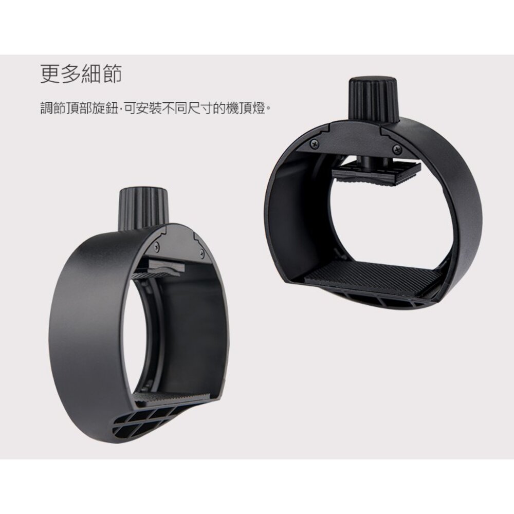 💎 快速安裝設計: 頂部設有 調節旋鈕,可根據閃燈頭部大小調整緊度,安裝簡單牢固,不傷閃燈表面。