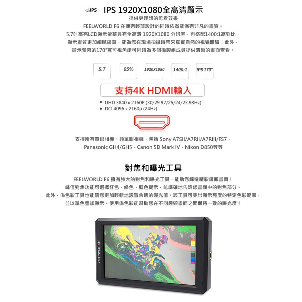 💯公司貨【FEELWORLD 富威德】F6 4K攝影監視螢幕(5.7吋) c&pPHOTO💳️刷卡↘限時下殺