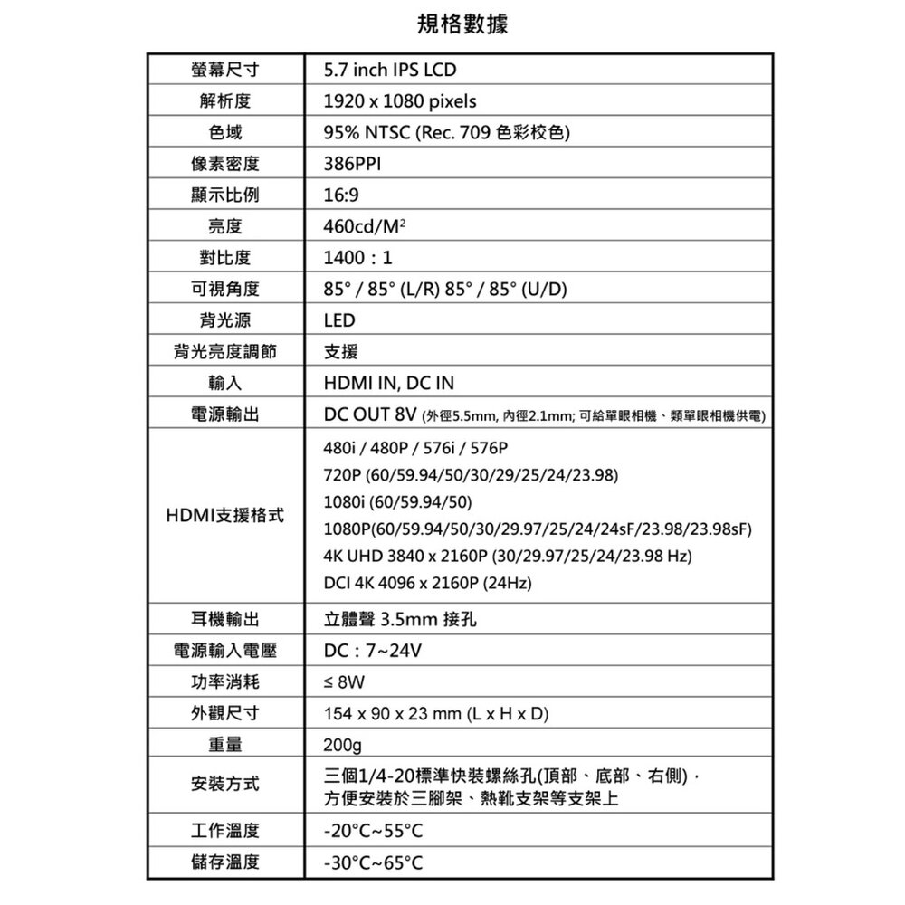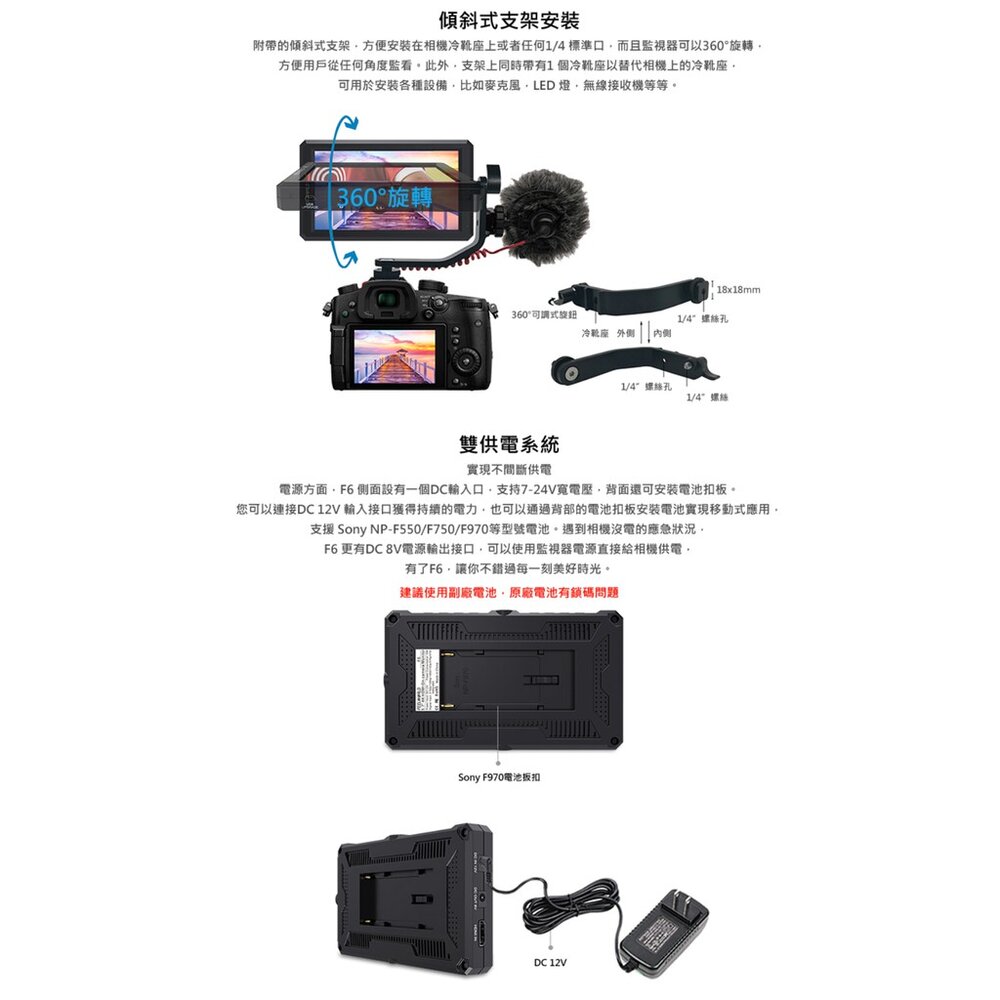 除新品不良可協助檢測換新,一經拆封恕無法接受退換貨 富威德】F6 4K攝影監視螢幕(5.7吋) c&pPHOTO💳️刷卡↘限時下殺