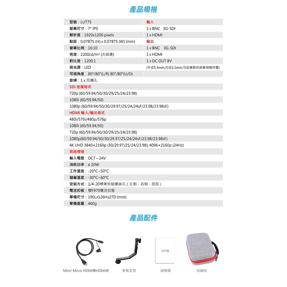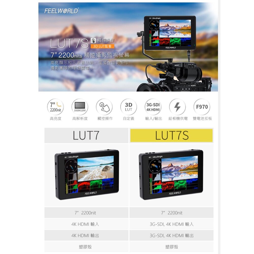 除新品不良可協助檢測換新,一經拆封恕無法接受退換貨 富威德】LUT7S 4K專業攝影監視螢幕(7吋) c&pPHOTO💳️刷卡