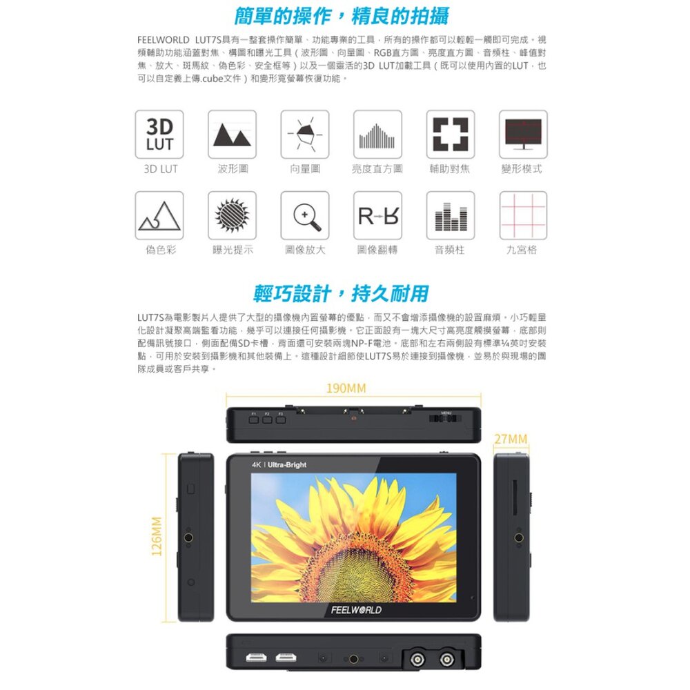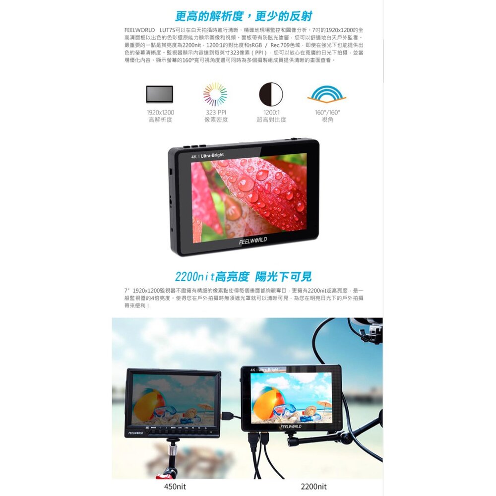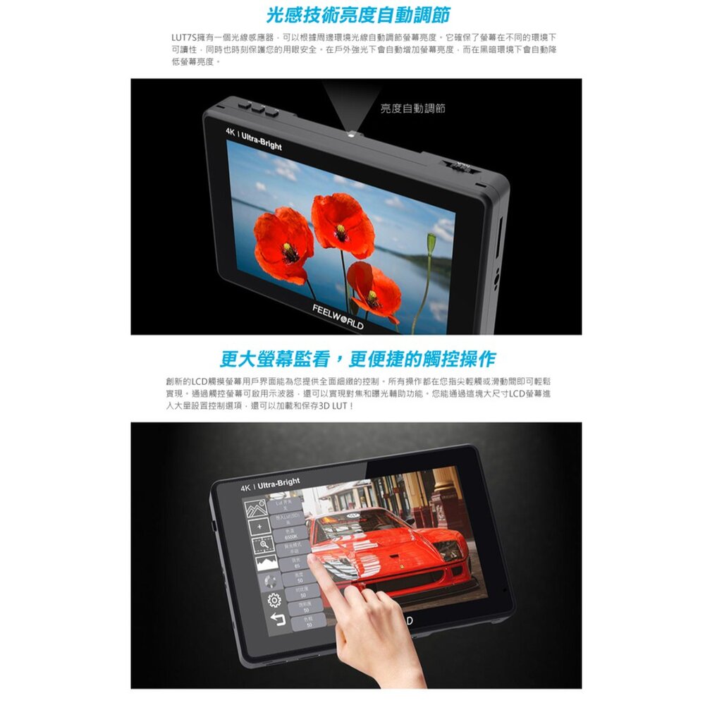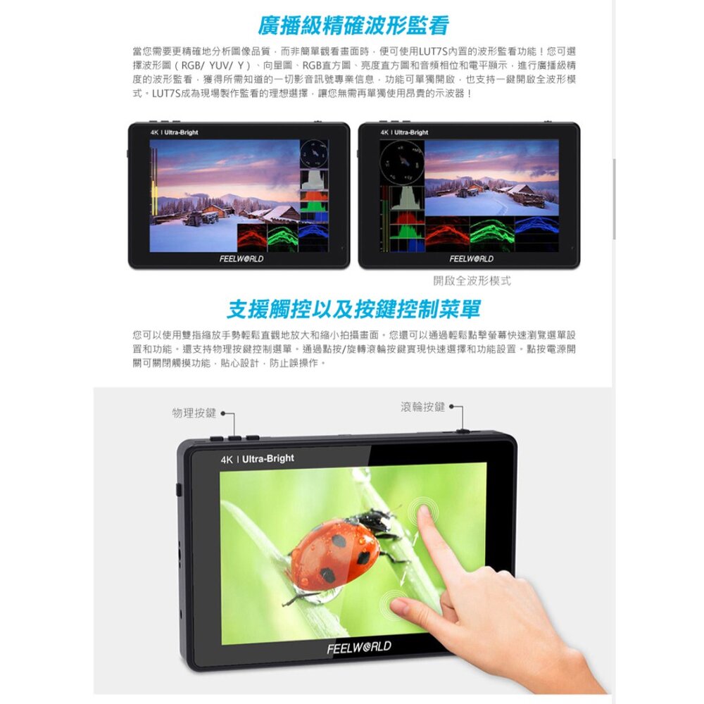 💯公司貨【FEELWORLD 富威德】LUT7S 4K專業攝影監視螢幕(7吋)